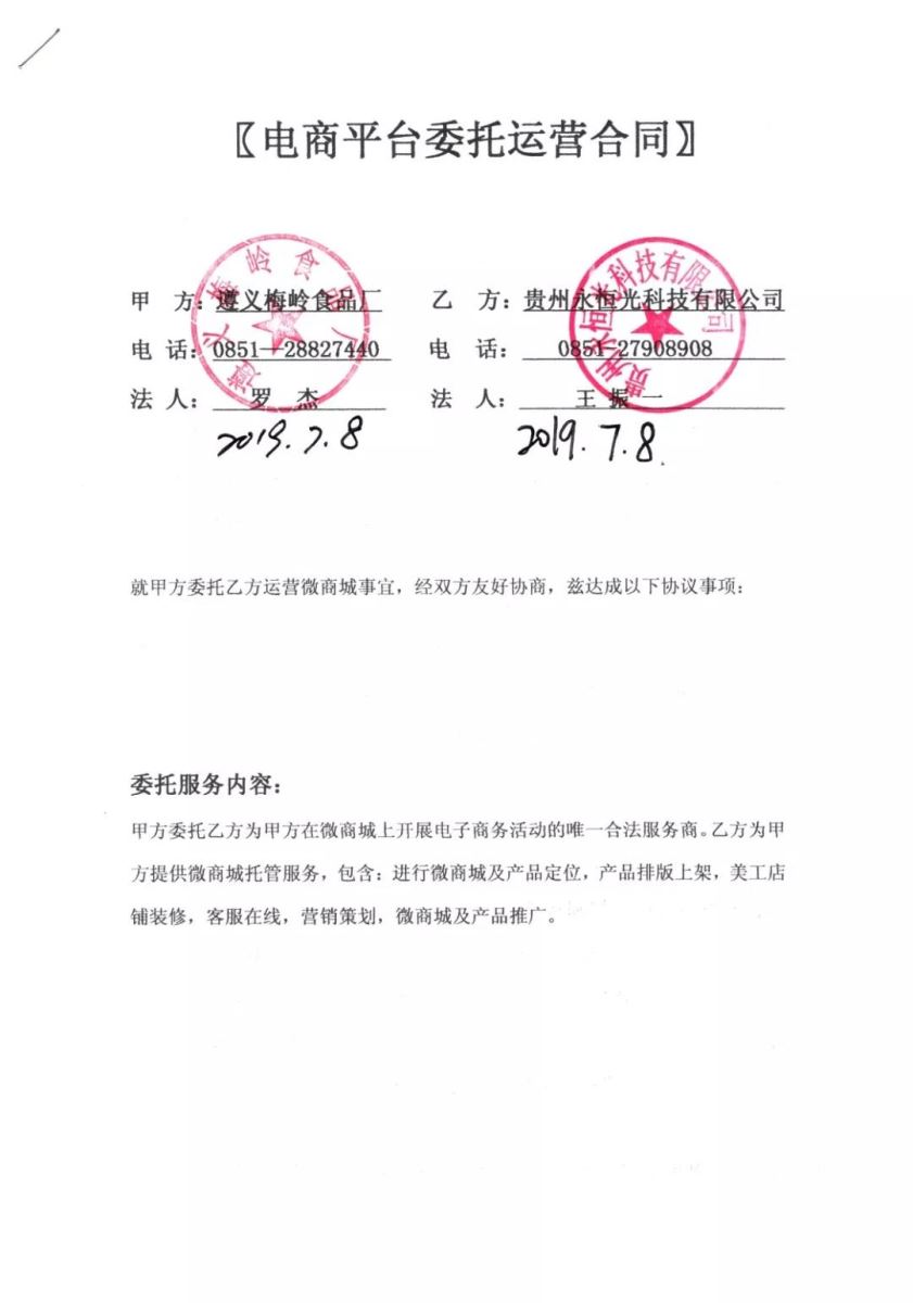 遵義梅嶺食品廠授權(quán)我司為電子商務(wù)活動(dòng)的唯一合法服務(wù)商!