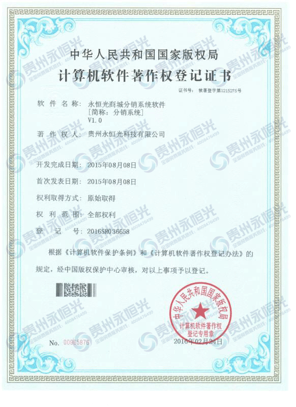計(jì)算機(jī)軟件著作權(quán)登記證書一