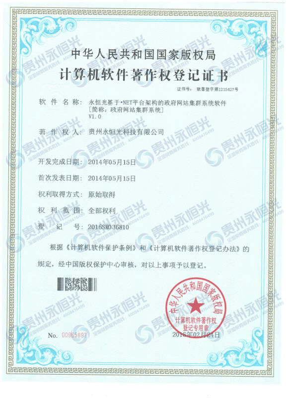 計算機軟件著作權(quán)登記證書四